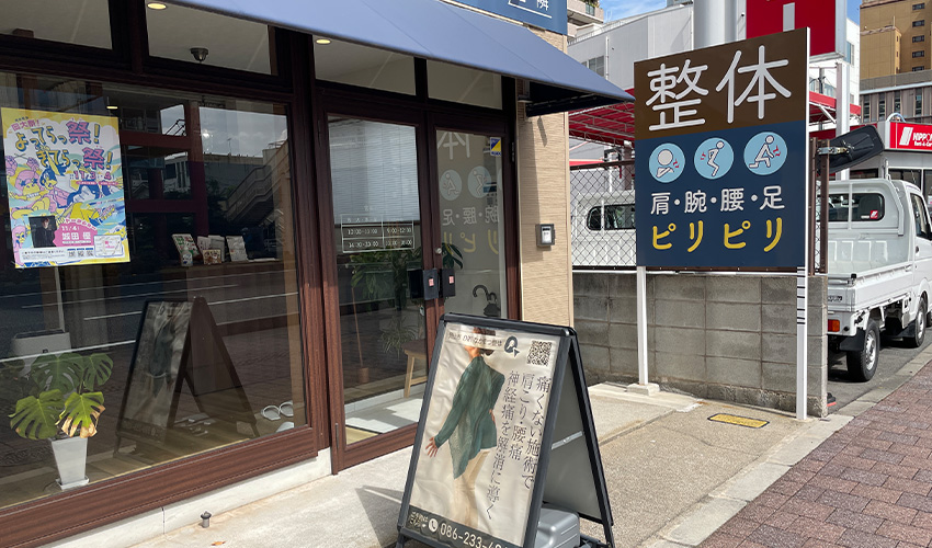岡山駅から徒歩15分。平日20時、休日も営業する通いやすい整体院