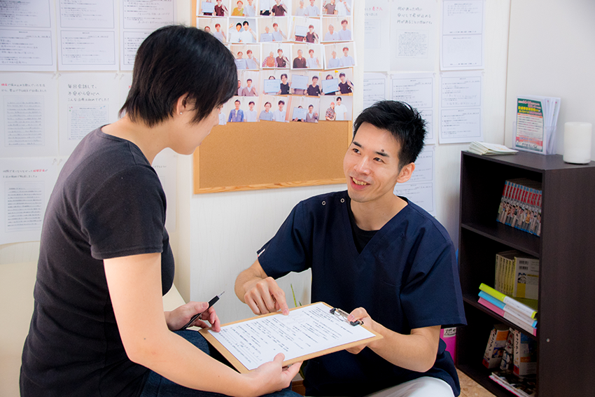 施術の後は、目的に合った通院期間・頻度・進め方を提案する時間が設けられています。