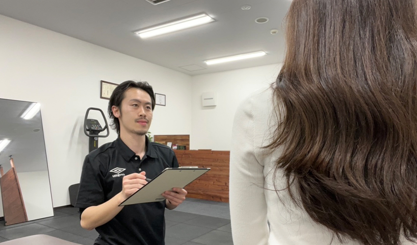 初回は痛みの強さやこれまでの経過だけでなく、「どの動きがつらいか」「日常生活で特に困っている場面はどこか」といった部分までていねいに聞き取っていきます。
